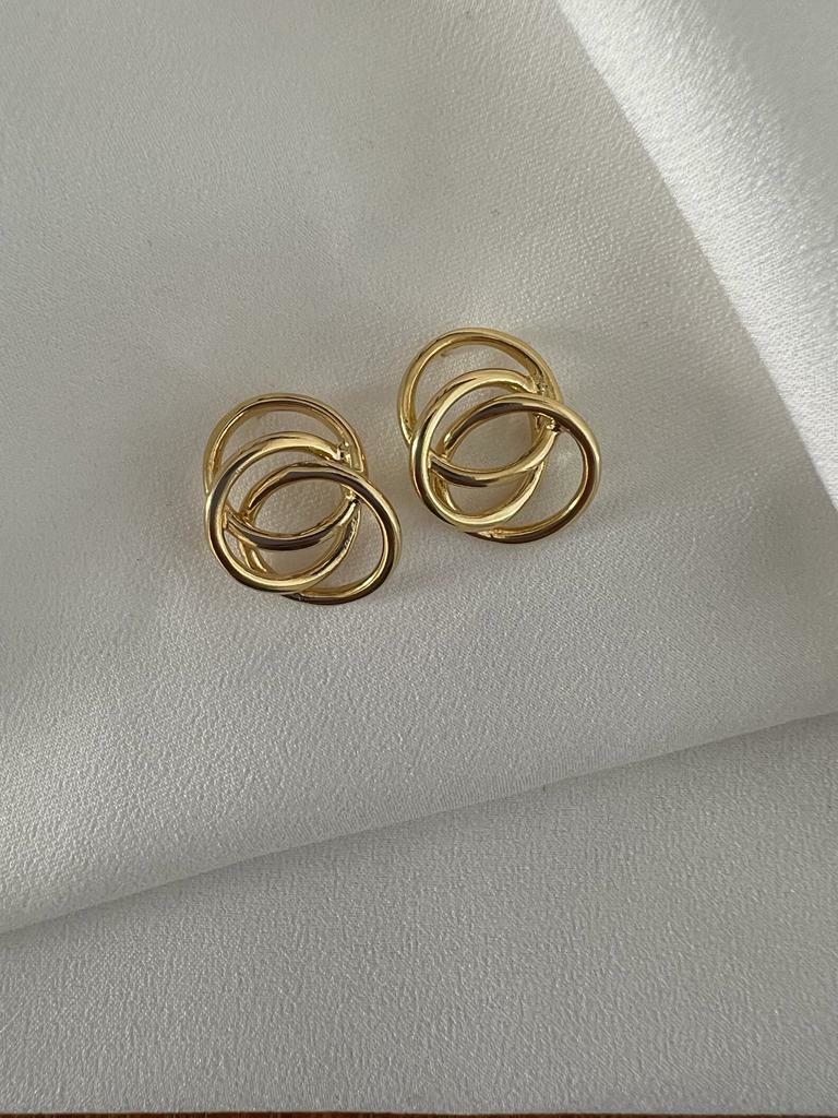 BRINCO DE ARGOLAS INTERCALADAS, SUPER ELEGANTE, BANHADO OURO 18K, ESTILO JOIA.